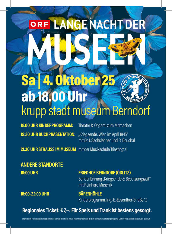 Für Informationen und Anmeldungen wenden Sie sich bitte an das Tourismusbüro "kult-tour im Zentrum" der Stadtgemeinde Berndorf, Alexanderstraße 7